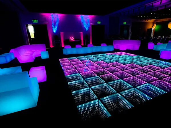 Led Dance Floor for a spark of POP and WOW! Midwest rentals with Omaha Dance Floor and Vamp Theme Events. Add led furniture for the win